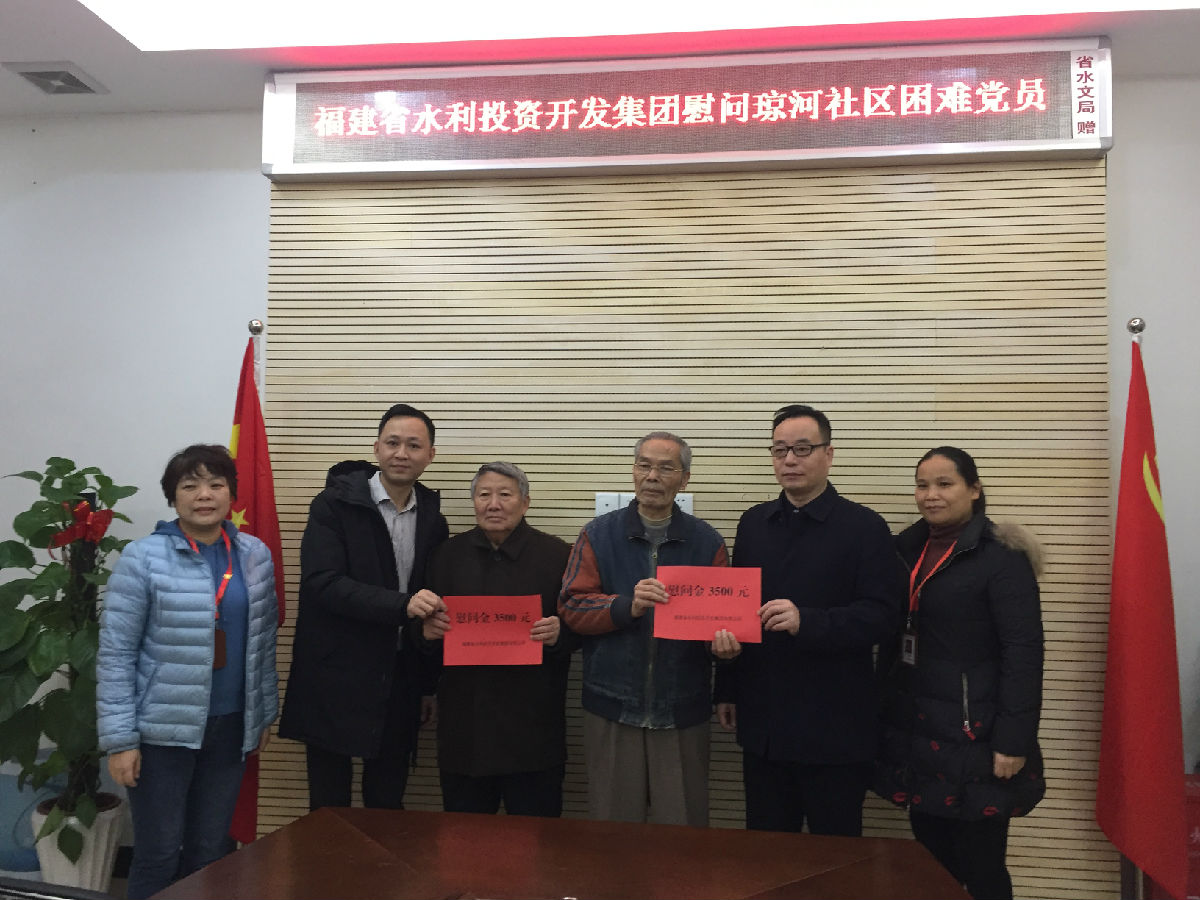 1月22日,集团党委副书记、纪委书记潘振铭带领直属党支部及党群工作部负责同志前往集团共建单位鼓楼区温泉街道琼河社区开展慰问活动,走访慰问了结对帮扶的三户困难党员、群众家庭,并送去慰问金。
