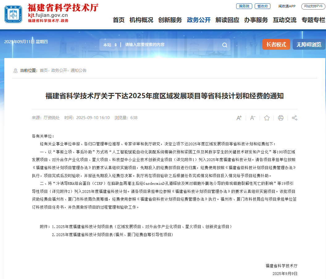 近日,福建省科学技术厅发布《福建省科学技术厅关于下达2025年度区域发展项目等省科技计划和经费的通知》,水投设计公司主导申报的《受水利工程影响的低枯水位BACT在线流量水文监测模型研发与应用》科研项目正式获批为省区域发展项目,可获科研补助经费100万元。