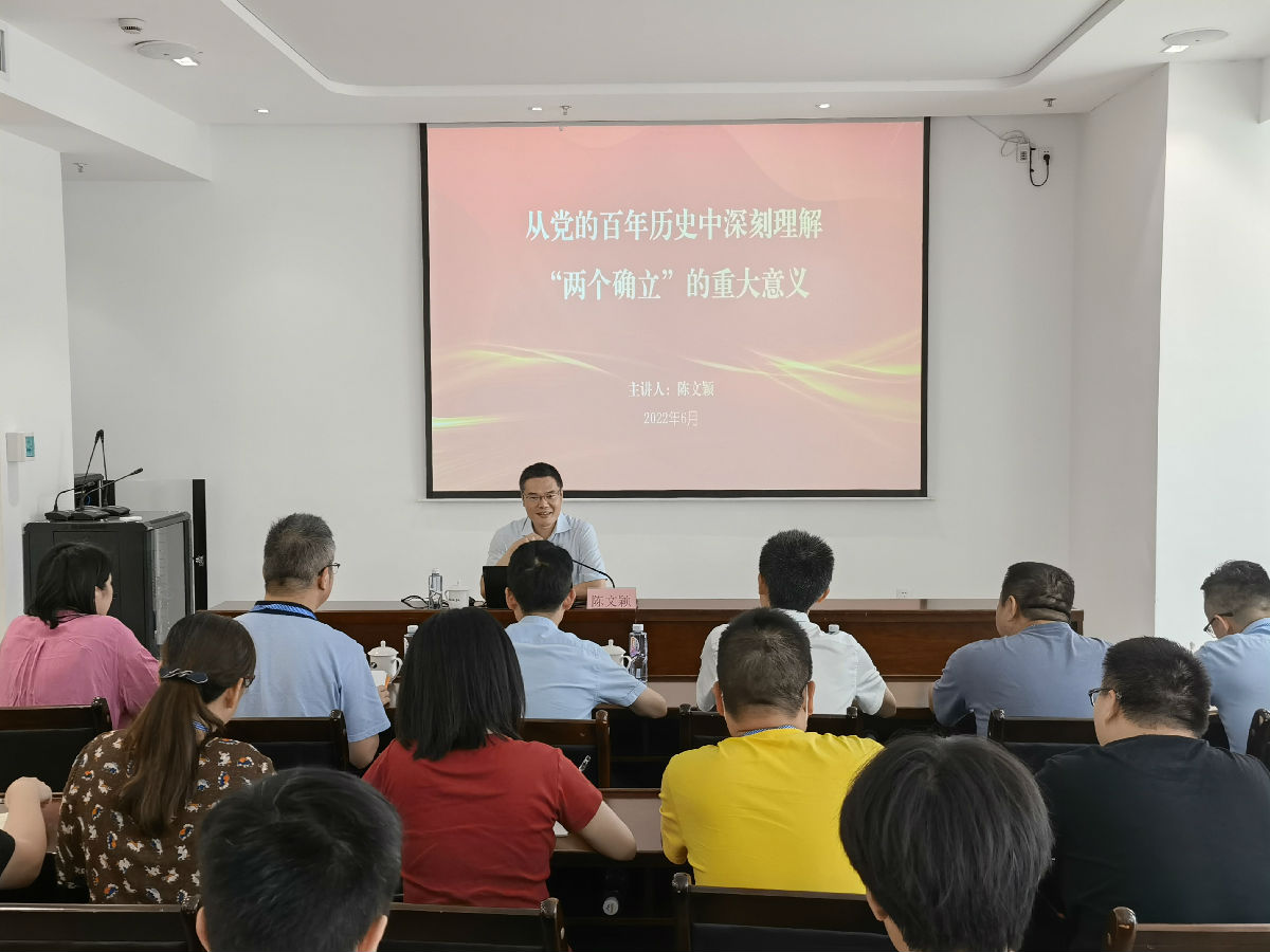 6月29日,集团党委委员、总会计师陈文颖赴水投设计公司开展专题党课宣讲。陈文颖围绕党的十九届六中全会审议通过的《中共中央关于党的百年奋斗重大成就和历史经验的决议》,以党的百年历史为主线,深入阐述“领导核心”“指导思想”以及“两个确立”对党的事业的极端重要性。他强调,水投设计公司全体党员干部职工要把思想和行动统一到党的十九届六中全会精神上来,进一步深刻认识坚强领导核心和科学理论指导,是关系党和国家前途命运、党和人民事业成败的根本性问题,把拥护“两个确立”真正转化为做到“两个维护”的政治自觉、思想自觉、行动自觉。通过本次党课,公司全体党员干部职工纷纷表示对“两个确立”的决定性意义有了进一步的认识,将更加坚定自觉地做到“两个维护”,以实际行动推动水投设计公司高质量发展,以更大作为、更好发展、更优成绩,迎接党的二十大胜利召开。