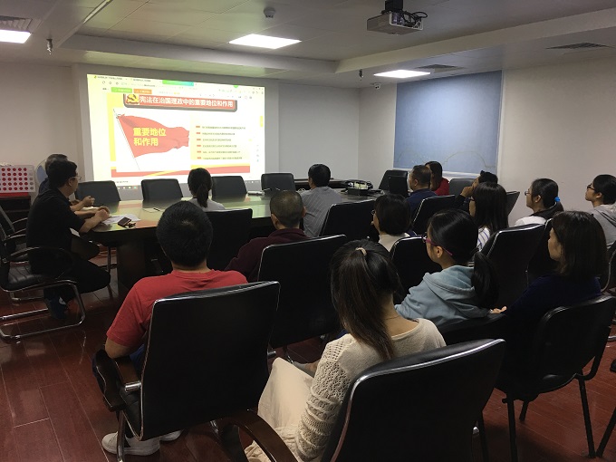 公司党支部书记、总经理赖潘清要求干部职工结合习近平新时代社会主义思想大学习活动和宪法学习宣传教育活动,增强法治观念,提升守法自觉。要结合新时期国有企业运营管理的新要求,依法依规履行职责、开展工作,推动企业法治建设不断深入。