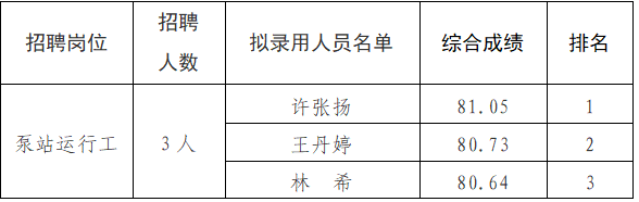 根据老王论坛 龙海水务公司第一批招聘公告,经过报名、资格审查、笔试、面试等公开招聘程序,现将3位拟录用人员进行公示。公示时间从2026年2月28日开始,公示期为七个自然日。在此期间内,如有意见可通过来电、来信、来访的形式反映情况。