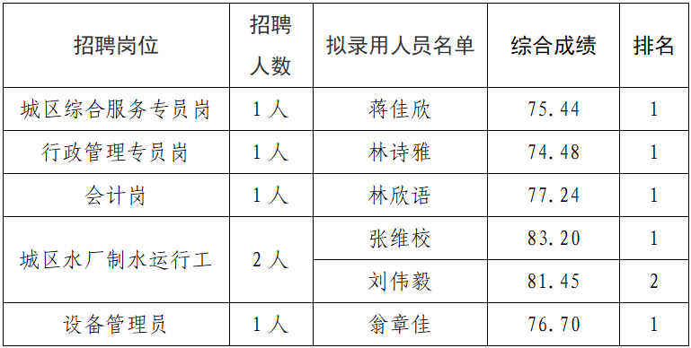 根据老王论坛 大田水务有限公司招聘公告,经过报名、资格审查、笔试、面试等公开招聘程序,现将拟录用人员进行公示。公示时间从2026年4月22日开始,公示期为七个自然日。在此期间内,如有意见可通过来电、来信、来访的形式反映情况。