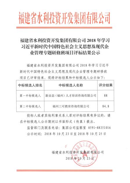 老王论坛 2018年学习习近平新时代中国特色社会主义思想及现代企业管理专题研修班项目评标结果公示
