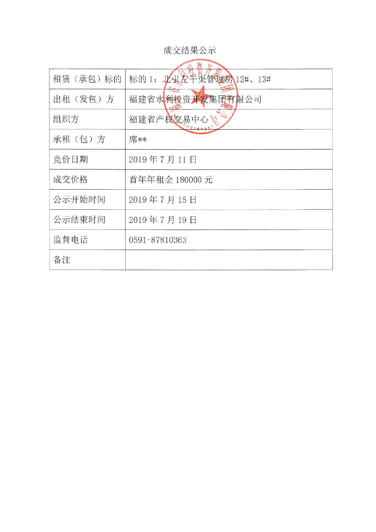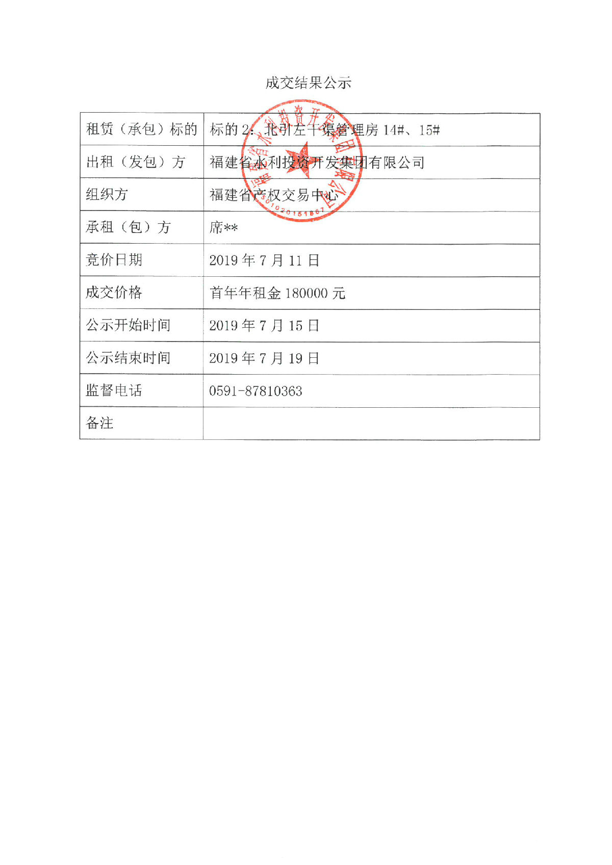角美镇北引左干渠农贸市场段管理房12#、13#和14#、15#招租成交结果公示